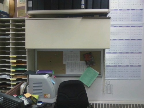 In other sad news, I forgot to take a picture of my desk at work while it still had all of my collage-y stuff decorating it. Tomorrow is my last day there, as I will be moving on to a bigger and better gig on Monday. Got my big girl shoes all ready and everything. I took down the collage-y stuff in such haste because I knew I was going to come down with a case of the weepies while I was doing it. Change is so hard and weird and awesome.