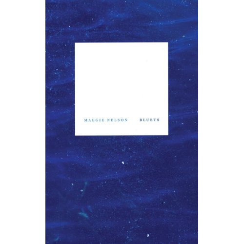 I just finished ready Bluets by Maggie Nelson last night. I mostly like books like this, ones that are collages of philosophies and other people’s writing in order to help make sense of an individual’s life/emotions. The book is composed of 240 short, numbered meditations. Here are some passages that I noted, in the order in which they appear.